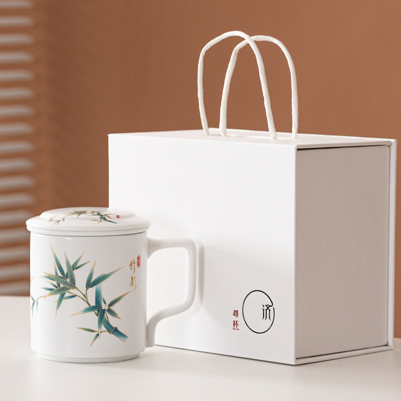 徳化白磁茶杯茶水分離蓋付きフィルタリング高顔値軽贅沢オフィスカップ陶磁器ギフトロゴカスタマイズ