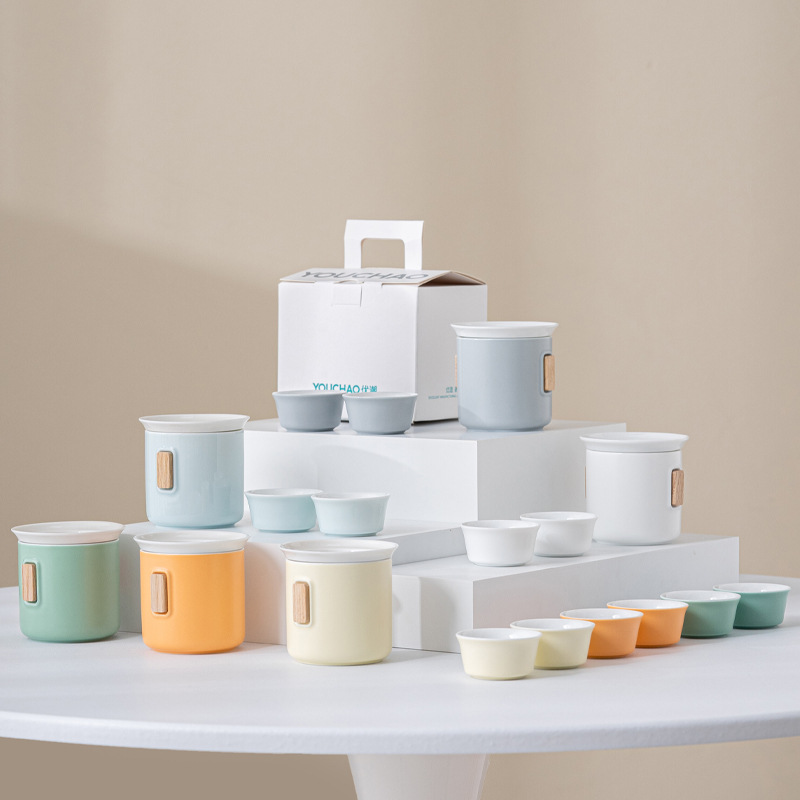 かわいい陶磁器旅行茶器携帯型快客カップ一本三杯は客先の特色である小さなプレゼントのカスタムロゴを贈る