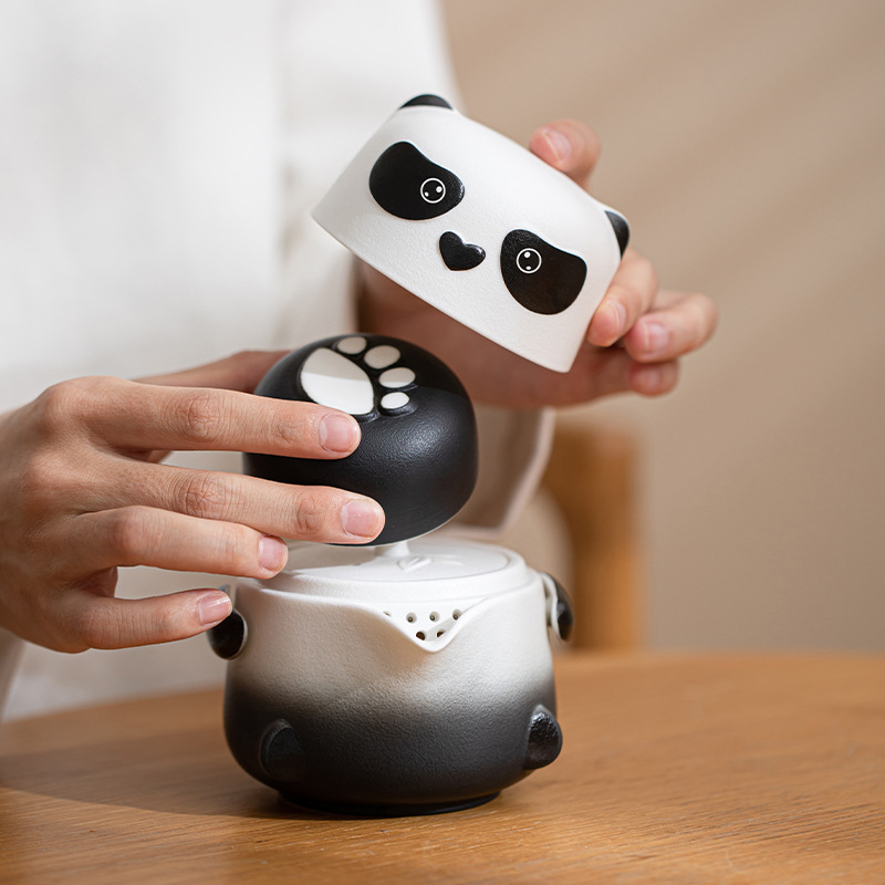 陶磁器旅行茶器パンダ快客杯携帯一本二杯屋外工夫茶器セットプレゼントカスタマイズ