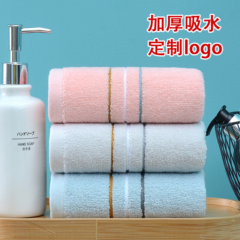 タオルメーカー直販純綿断段無地吸水タオル家庭用柔らかい洗顔タオルプレゼントロゴ卸売り