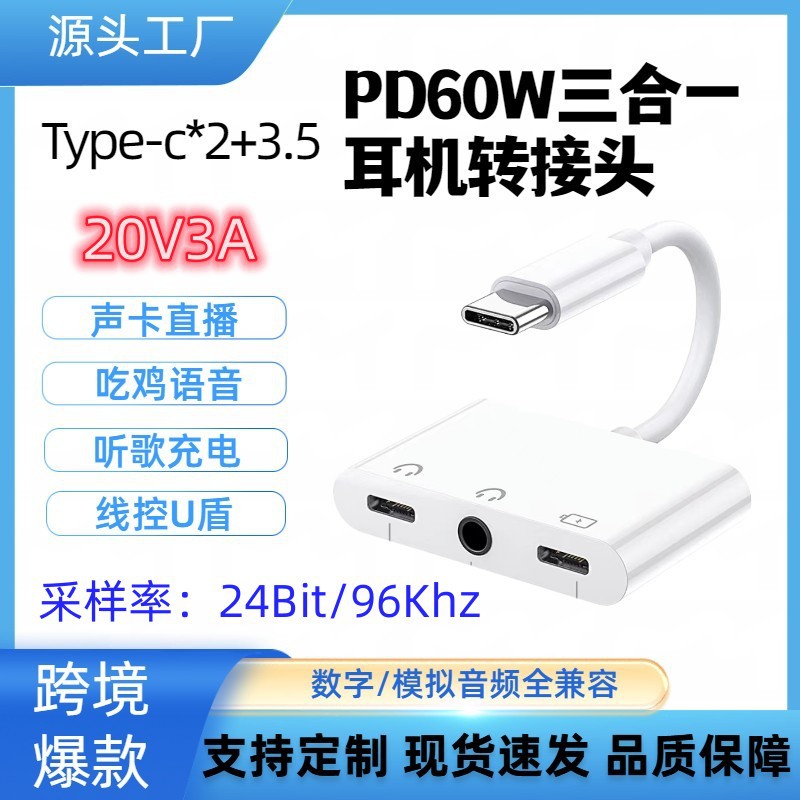 Type-cから3.5mmデジタルオーディオへの変換2 in 1 pd60w通話聴歌充電オーディオ変換器