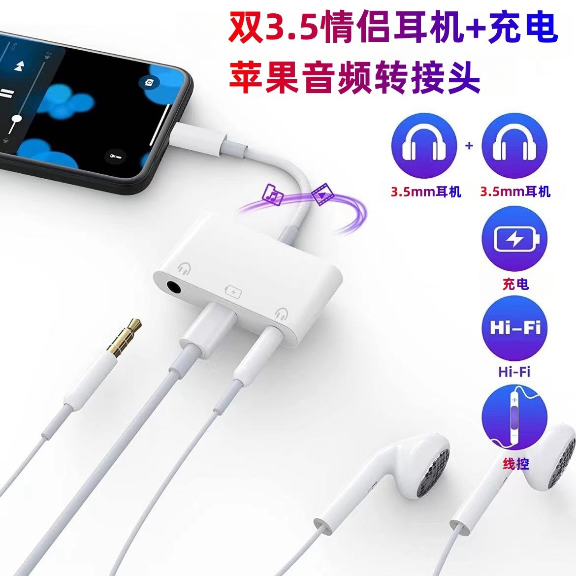 アップルのiphoneイヤホンに適したオーディオアダプタのダブル3.5mmイヤホン + lighting充電変換器
