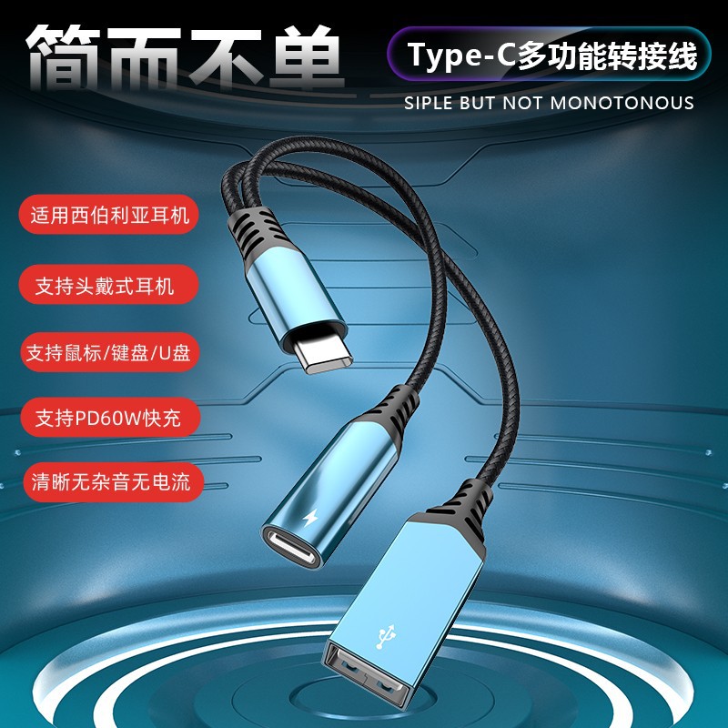 プライベートモデル新製品typec回転3.5mmイヤホンオーディオコネクタ充電pd60w急速充電二合一変換ケーブル