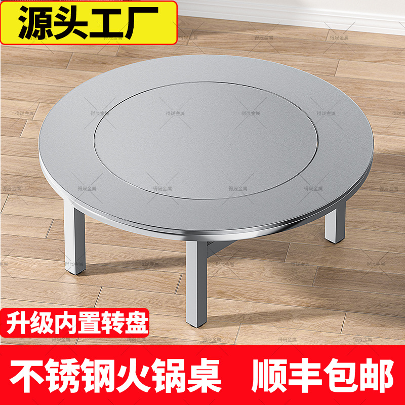 ステンレスの円卓は回転盤の食卓を内蔵しています。