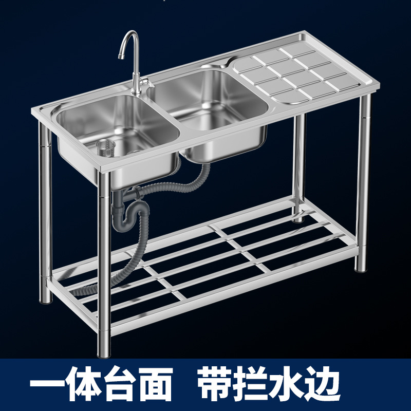 一体式食器洗い池家庭用プラットフォーム商用キッチンステンレスシンク二重溝厚さテーブルスタンド付き