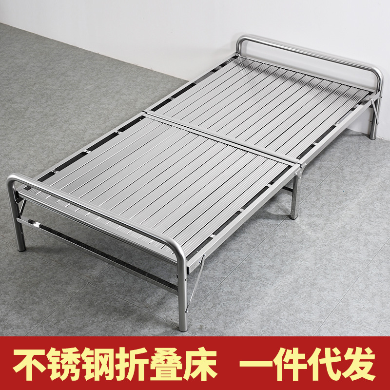 ステンレス折り畳みベッド昼休み簡易成人家庭用シングルベッド二人1.5昼寝携帯ベッドフレーム1.2メートル1m