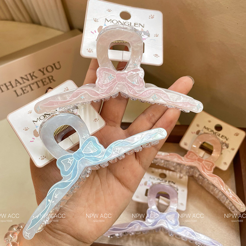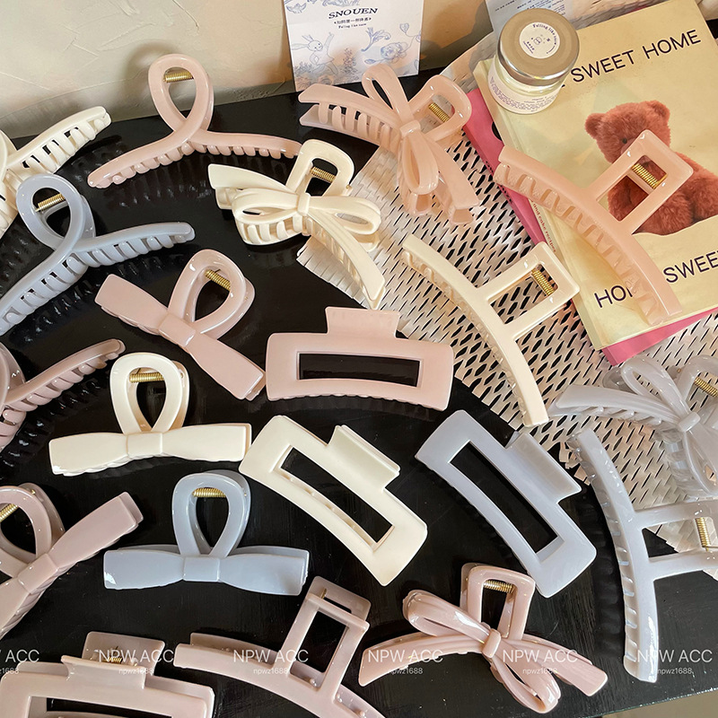 日韓クリーム色の白い蝶結びのクリップの大きいサイズの高級感の後頭部のサメの魚はアクリルの髪を挟んで女をつかみます。