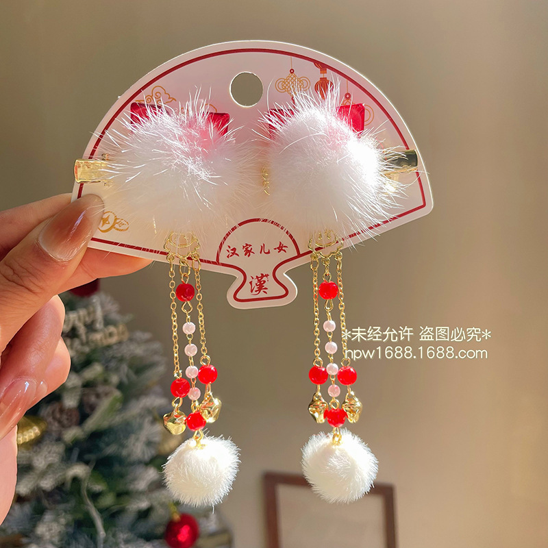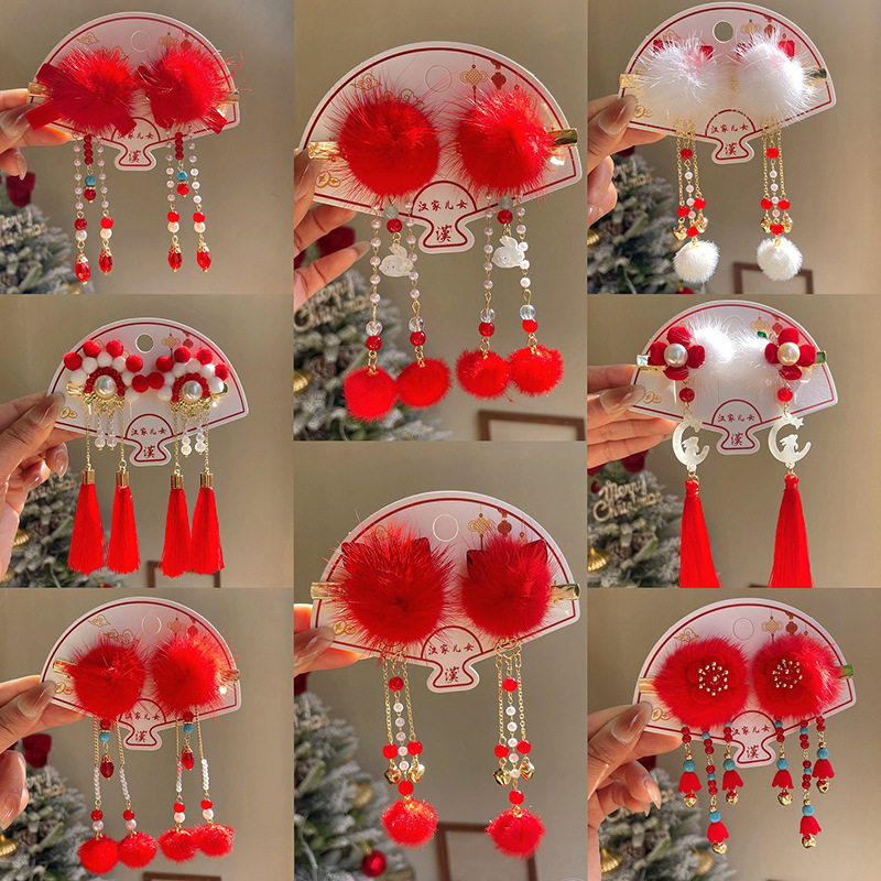 新しいスタイルの古風な子供の赤い蝶結びのヘアピンの国風の毛玉のお祝いのヘアピンの漢服の頭飾りの赤ちゃんの新年