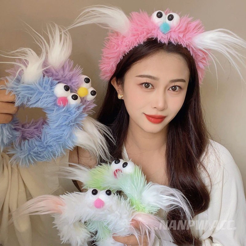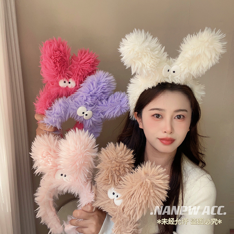 ウサギの耳のおかしな毛のカチューシャの女性の化粧はマスクのかわいい毛のカチューシャの髪飾りの2023新型のカチューシャをつけます。