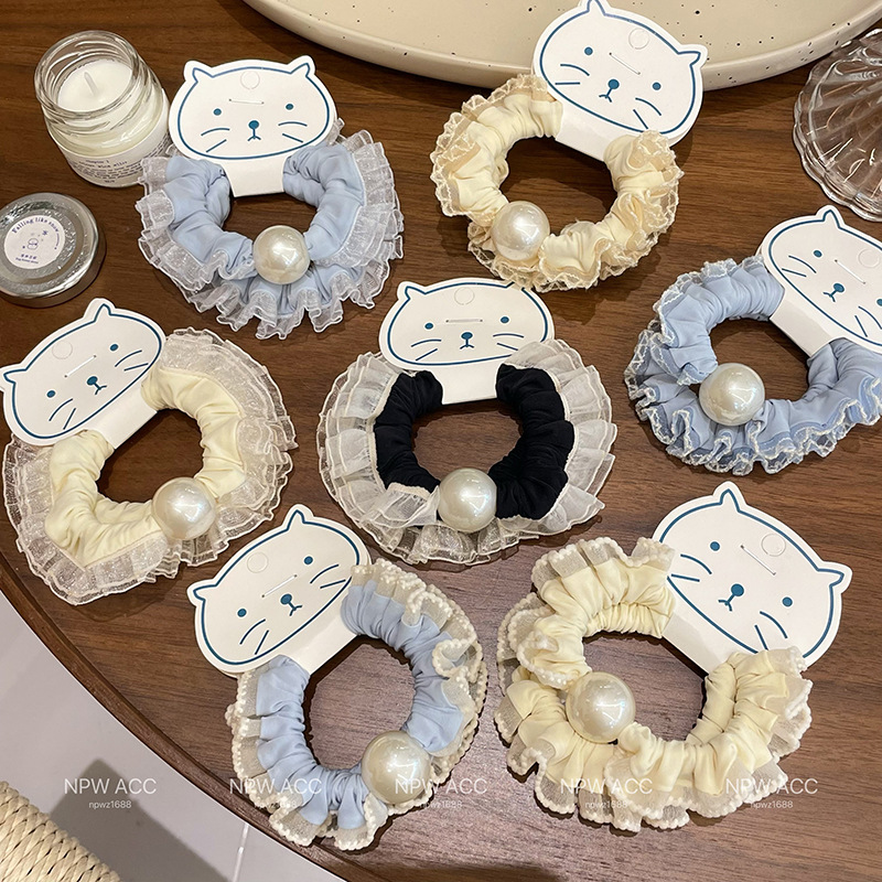 新しい黒の高弾性ゴムバンドレースパールレースヘアバンドハイエンドポニーテールヘッドバンドプレーンリングセット