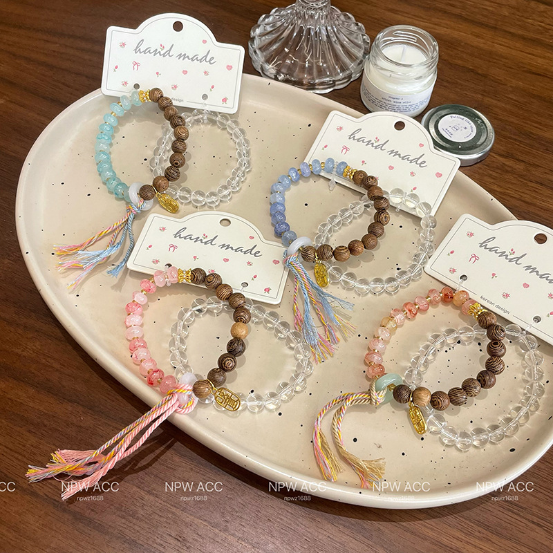 レトロな新しい中国風のガラスビーズブレスレット、多用途の国民的トレンド木製ビーズブレスレット、景勝地の文化的で創造的なジュエリーブレスレット、売れ筋