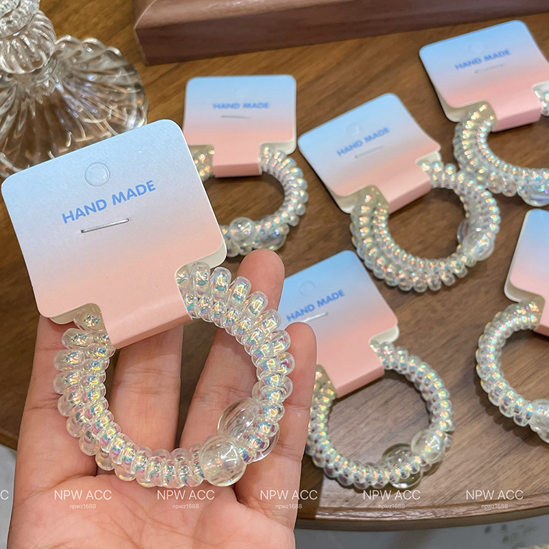 夏の新鮮なマーメイドカラフルなビーズ電話コードヘアネクタイ韓国の甘い女の子ポニーテールヘアロープゴムバンドヘアアクセサリー