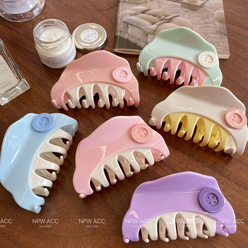 デザイナーボタンクリップ女性の赤いヘアピンカラーマッチングヘアピンミディアムサメクリップヘア気質クリップ帽子