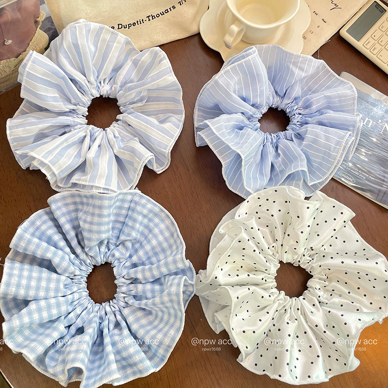 海塩藍デニム布芸超大サイズのシュシュ少女の大腸輪は団子の頭を刺します。