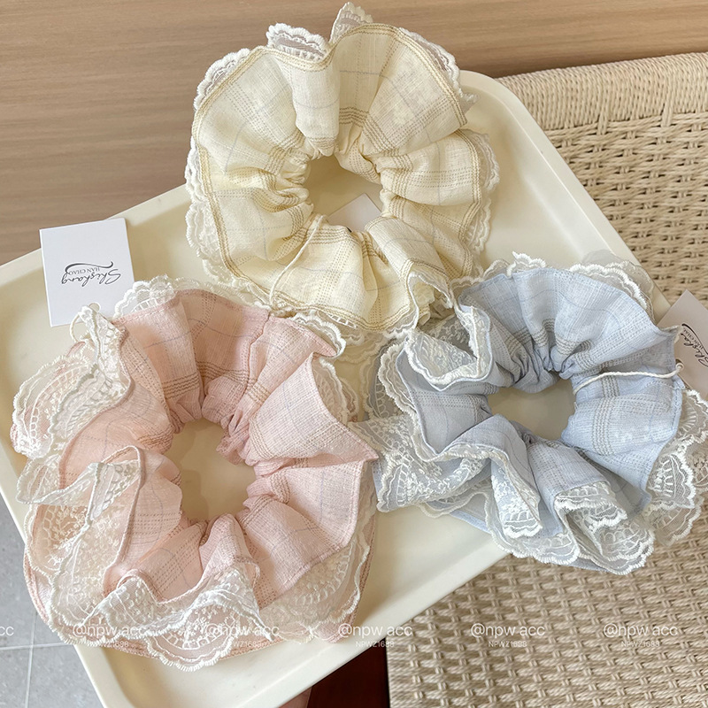 森系の大腸の髪輪は髪の毛の皮の皮のカバーのレースの紐の2025年の新型の縄を刺して髪の飾りの女性を傷つけません。