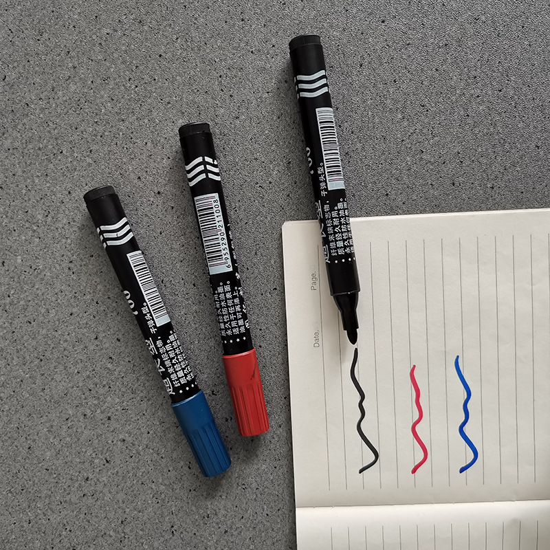 黒色の油性マーカーの学生の美術の絵の線の筆の単一の頭のマークのペンの学生は重点の速達のペンをかきます。
