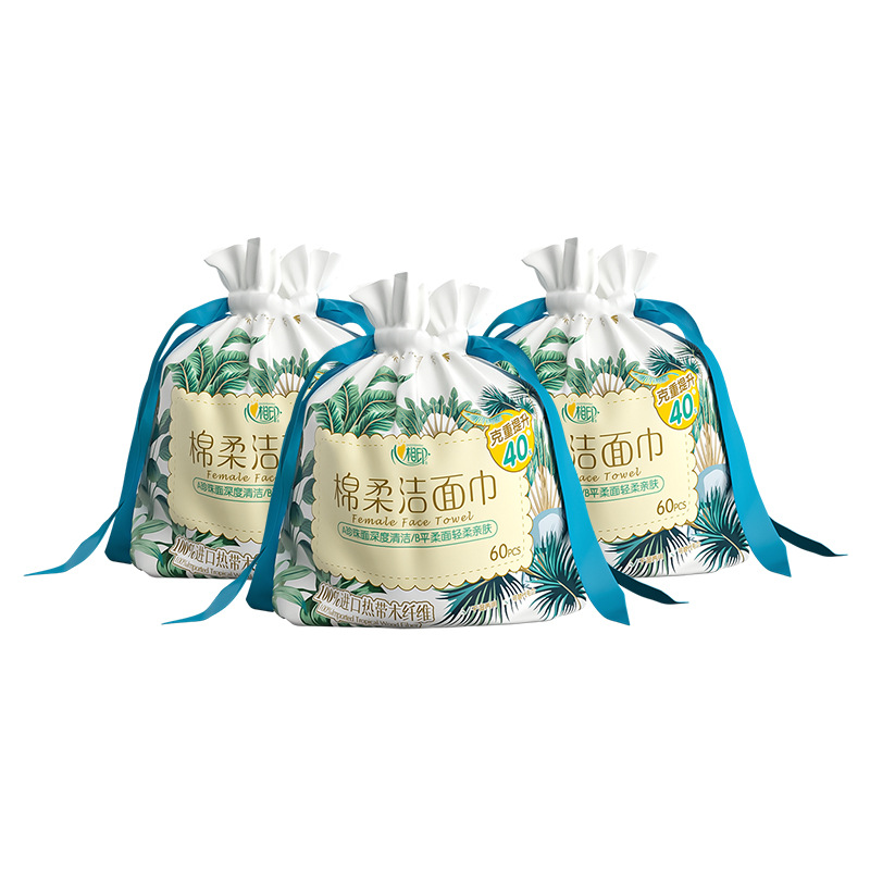 Xcd060心相印綿柔シリーズ60枚入り使い捨て洗顔タオル乾湿両用洗顔タオル巻き袋