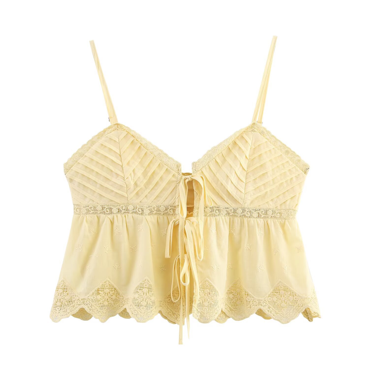AliExpress クロスボーダーヨーロッパとアメリカの衣料品卸売 2025 早春の新しい女性の刺繍サスペンダートップ