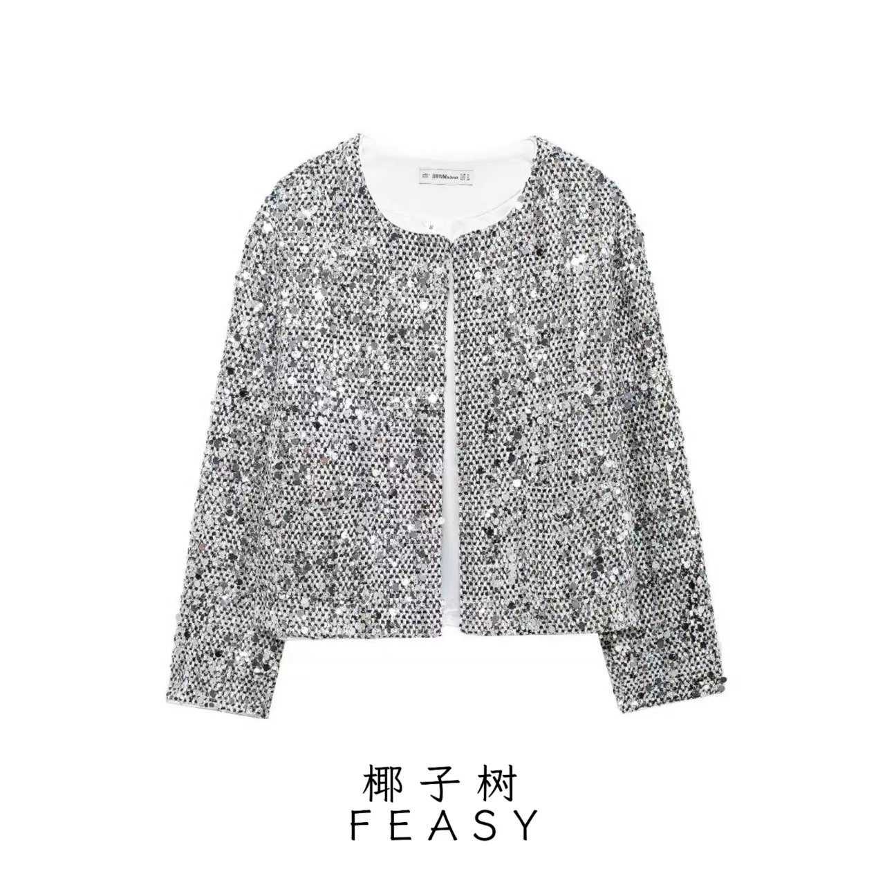 アマゾンの国境を越えた対外貿易欧米の婦人服2024秋冬の新しい気質ファッションジャケットの上着のスパンコール