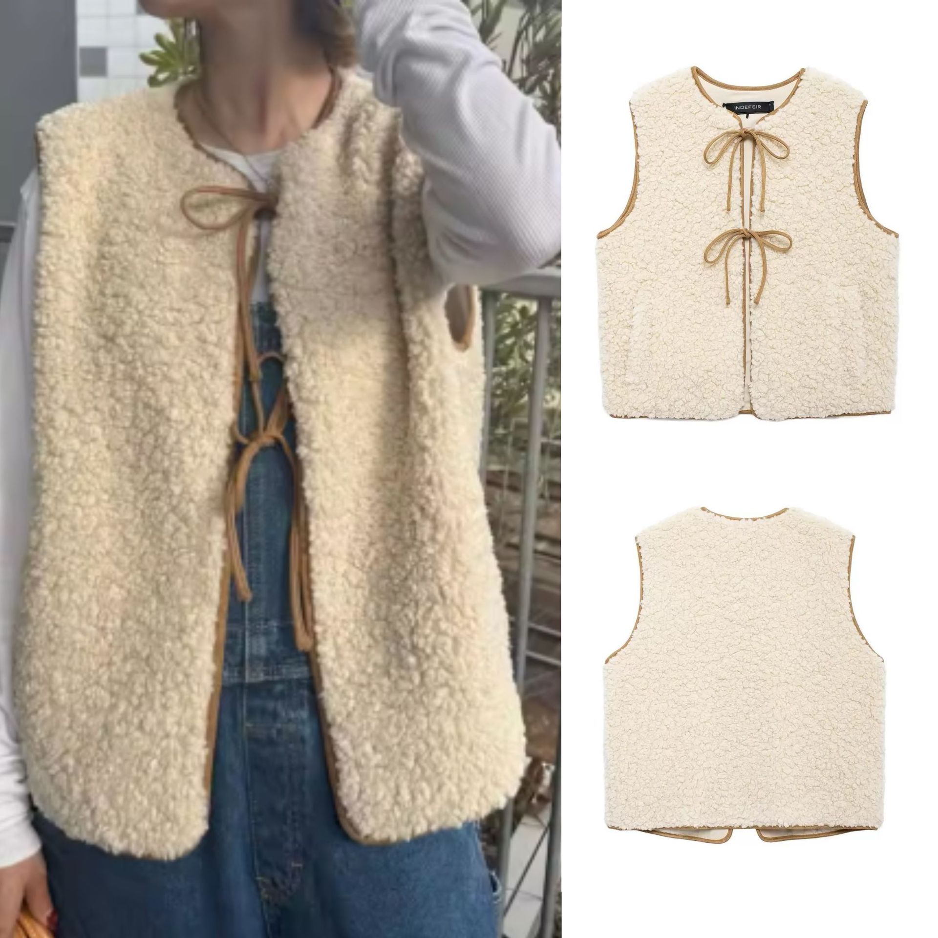 AliExpress ホットスタイル ZA 国境を越えた外国貿易ヨーロッパとアメリカの女性のヨーロッパとアメリカンスタイルのレースアップオールマッチフリースベスト