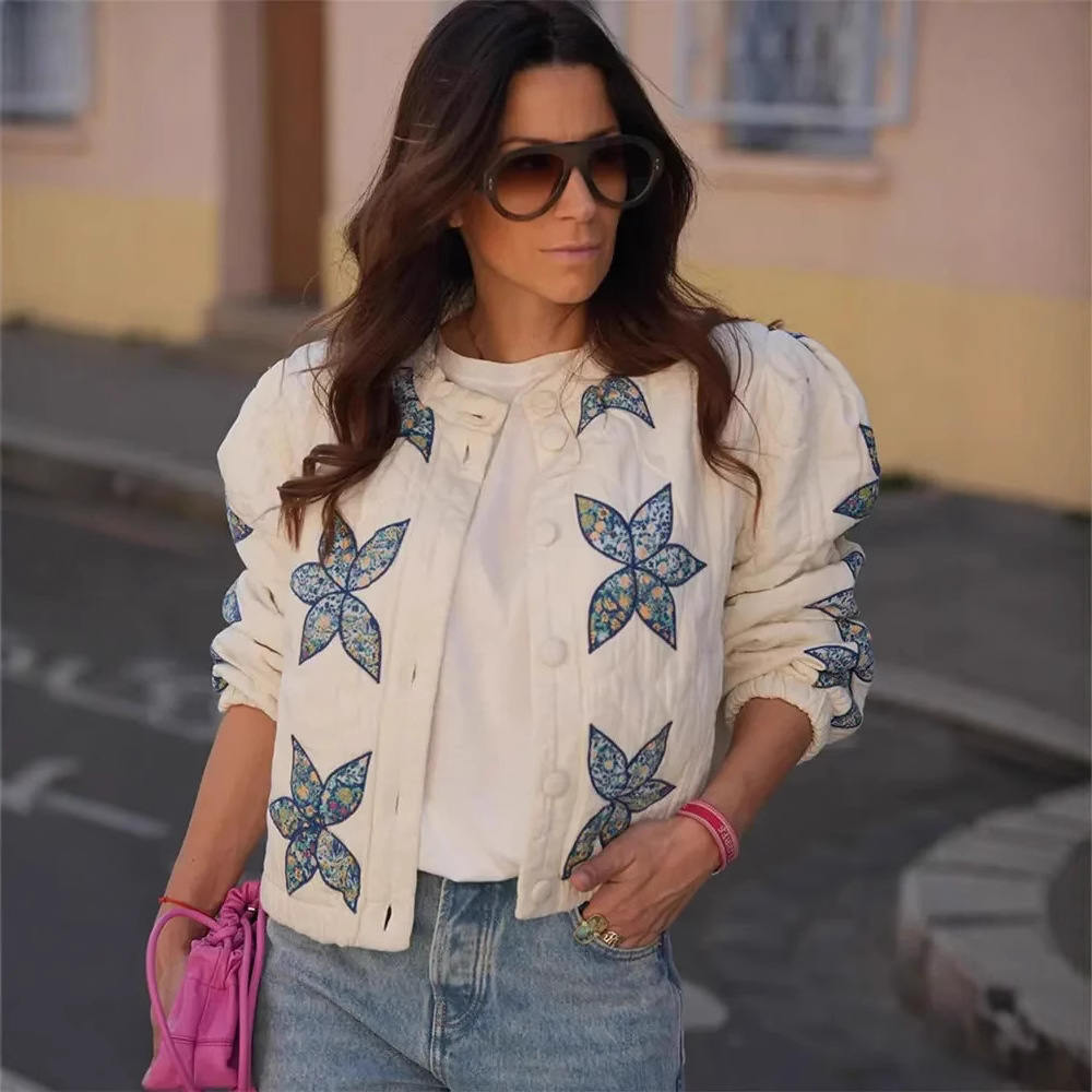 アマゾン国境を越えた対外貿易欧米の女装2024秋冬の新しいファッション5色のキルティング刺繍綿服のコート