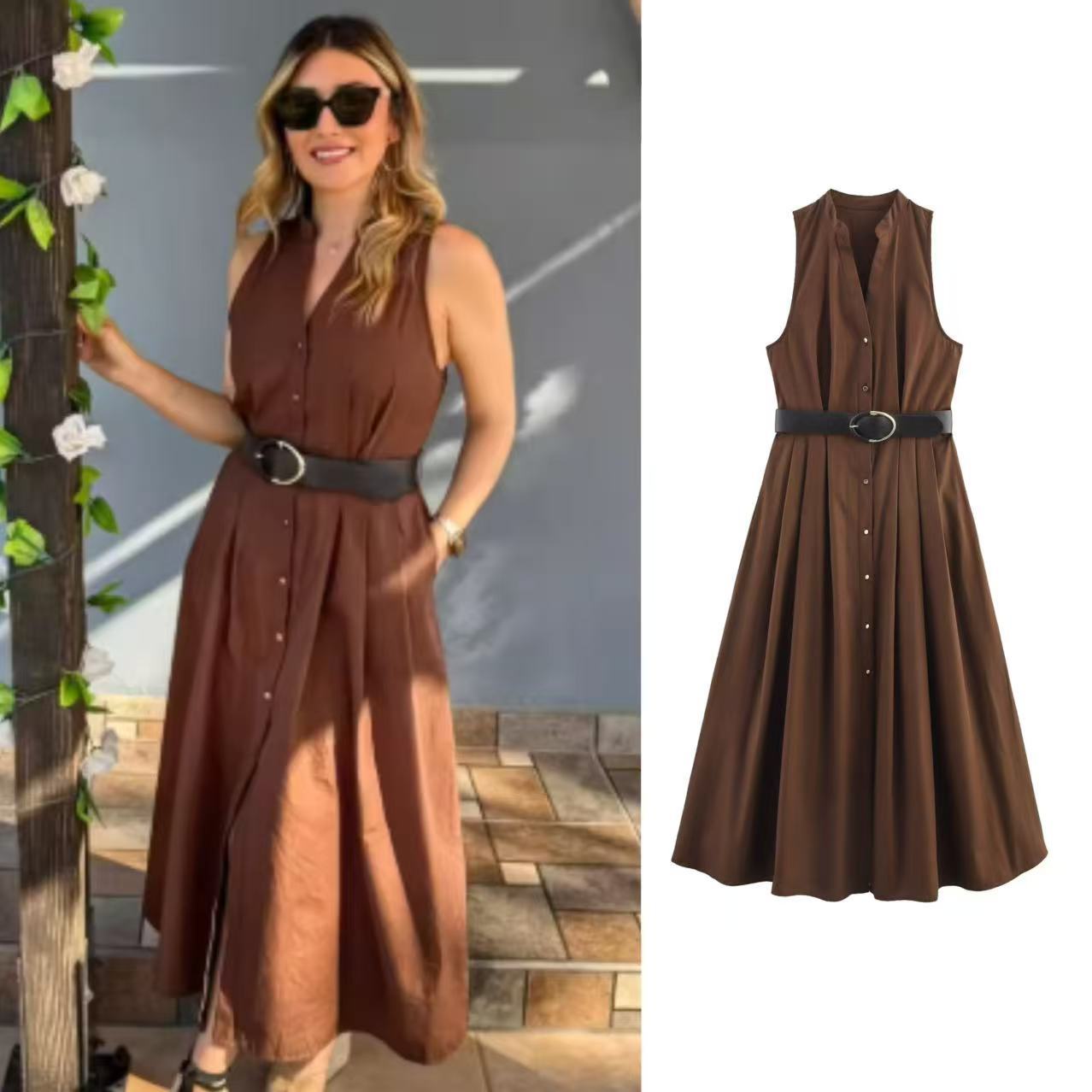 AliExpress 外国貿易卸売 2025 夏の新しいヨーロッパとアメリカンスタイルのライトラグジュアリーハイエンドベルト付きドレス