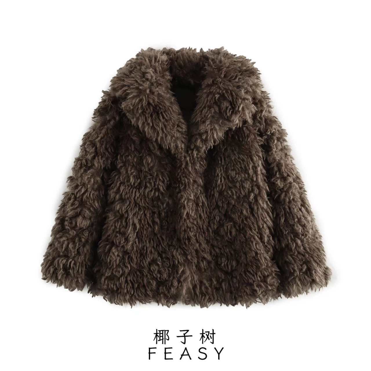 アマゾンの国境を越えた対外貿易欧米の女装2024秋冬の新しい人工毛皮効果の短いコートコート