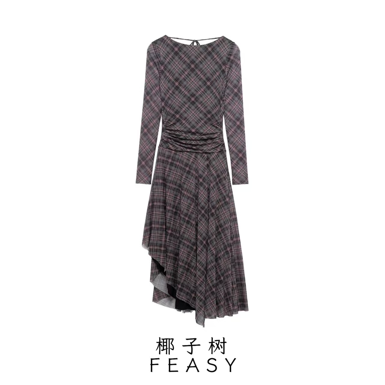 アマゾン国境を越えた対外貿易欧米女装2025春の新型街頭ファッション格子しわシルクネットワンピース