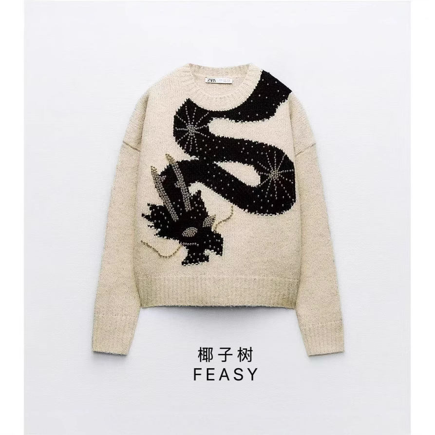 TAOP & ZA春の新型女装欧米風のゆったりとしたカジュアルな長袖セーターのニットコート95987