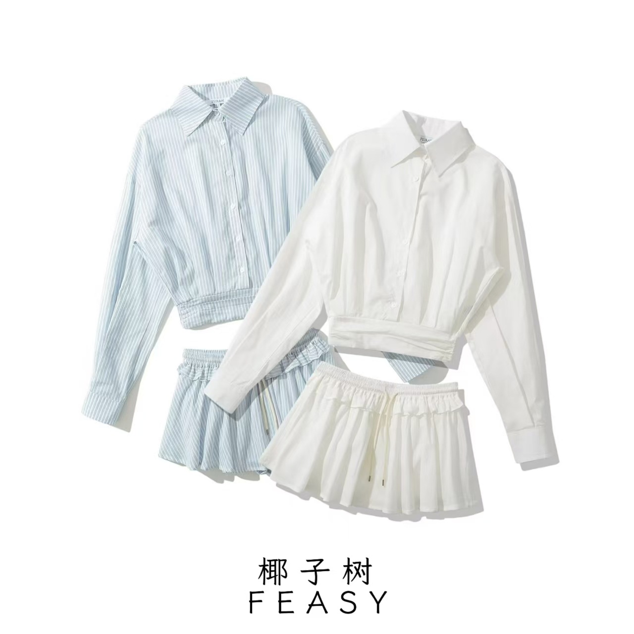 アマゾンの国境を越えた対外貿易欧米の婦人服2025春の新型シャツa型のひもが腰の傘のスカートのスーツを緩めます。