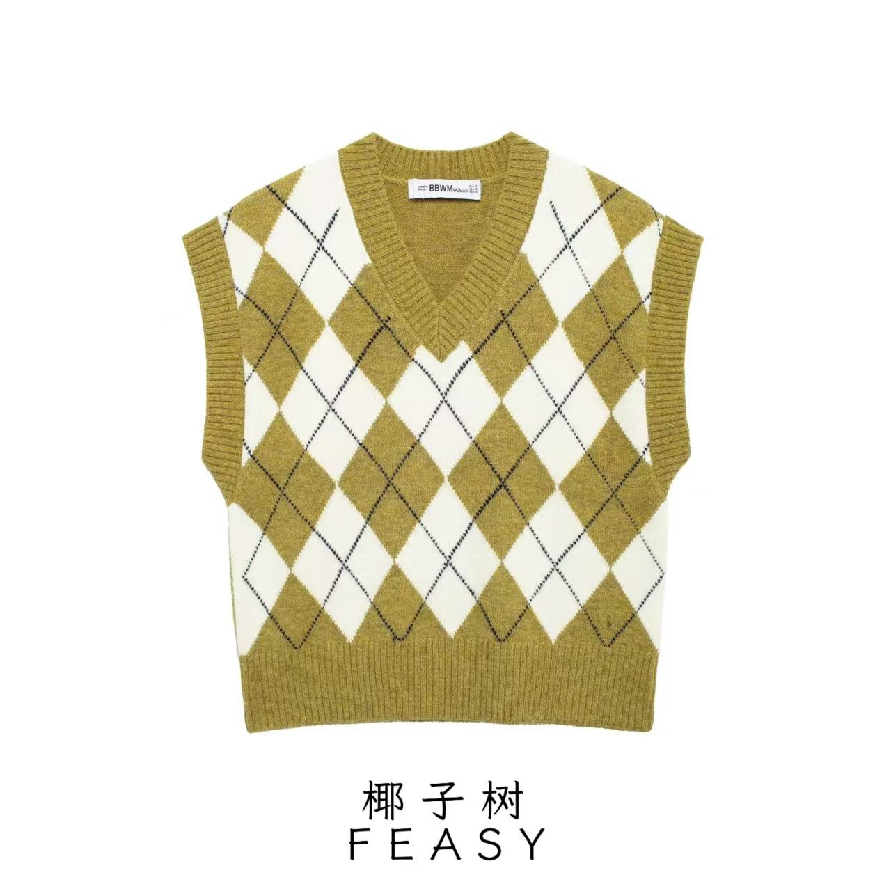 アマゾンクロスボーダー対外貿易欧米婦人服2025春新作ファッション菱形紋ジャカードベストニット