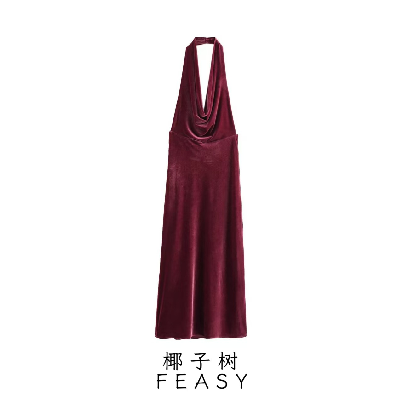 アマゾンの国境を越えた対外貿易欧米の婦人服2025春の新型の気質は、ベルベットの質感の長いワンピースを背にしている