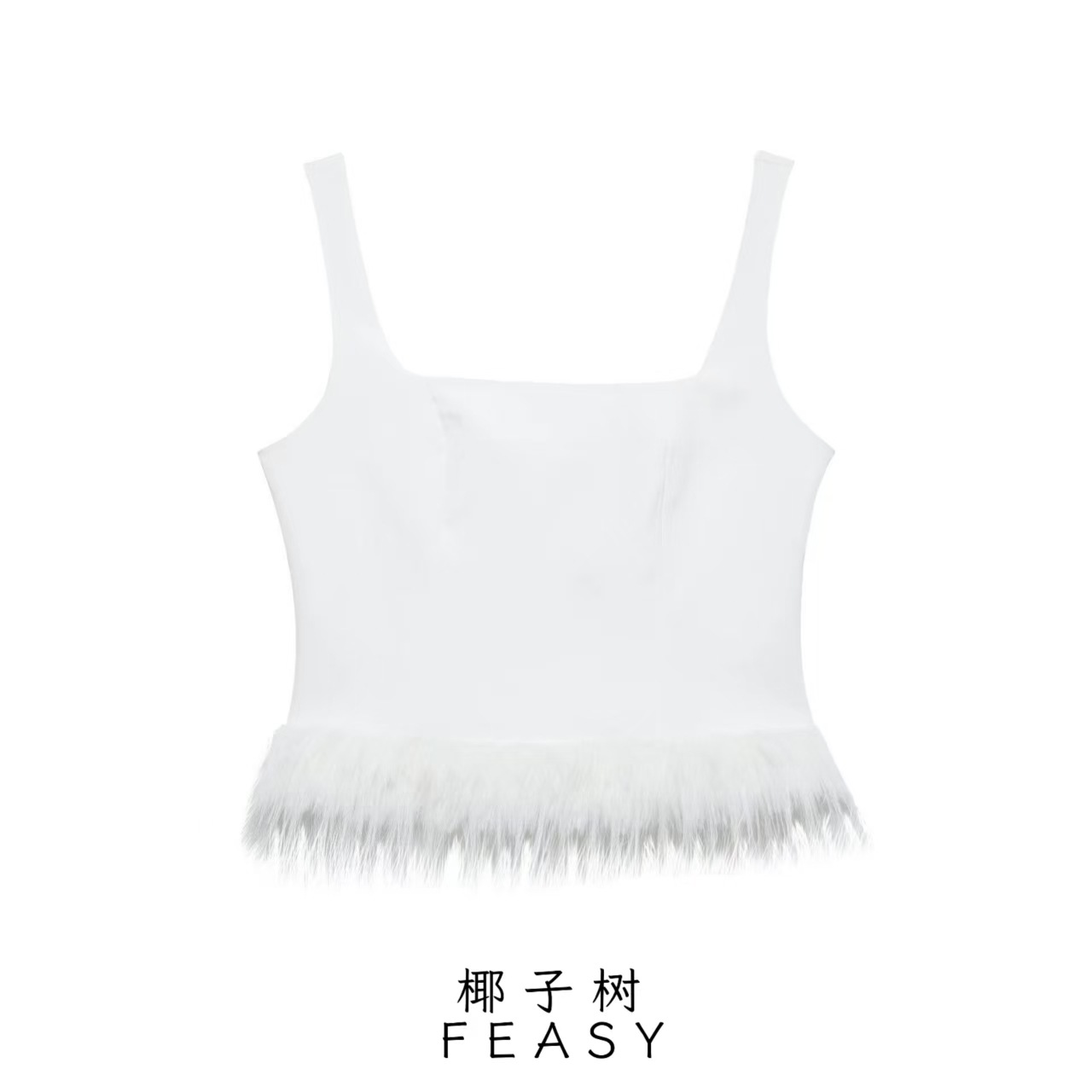 アマゾン国境を越えた対外貿易欧米の女装2024秋冬の新ファッション純色羽飾り弾力ストラップ上着