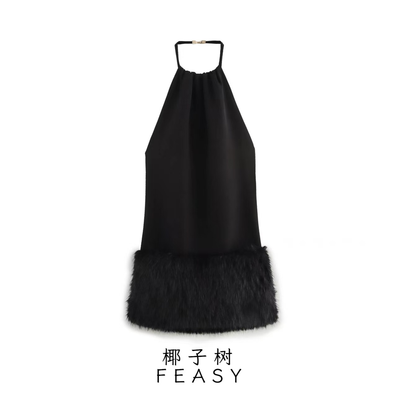 アマゾンクロスボーダー外国貿易欧米婦人服2025春新作ファッション人工毛皮効果裾ワンピース