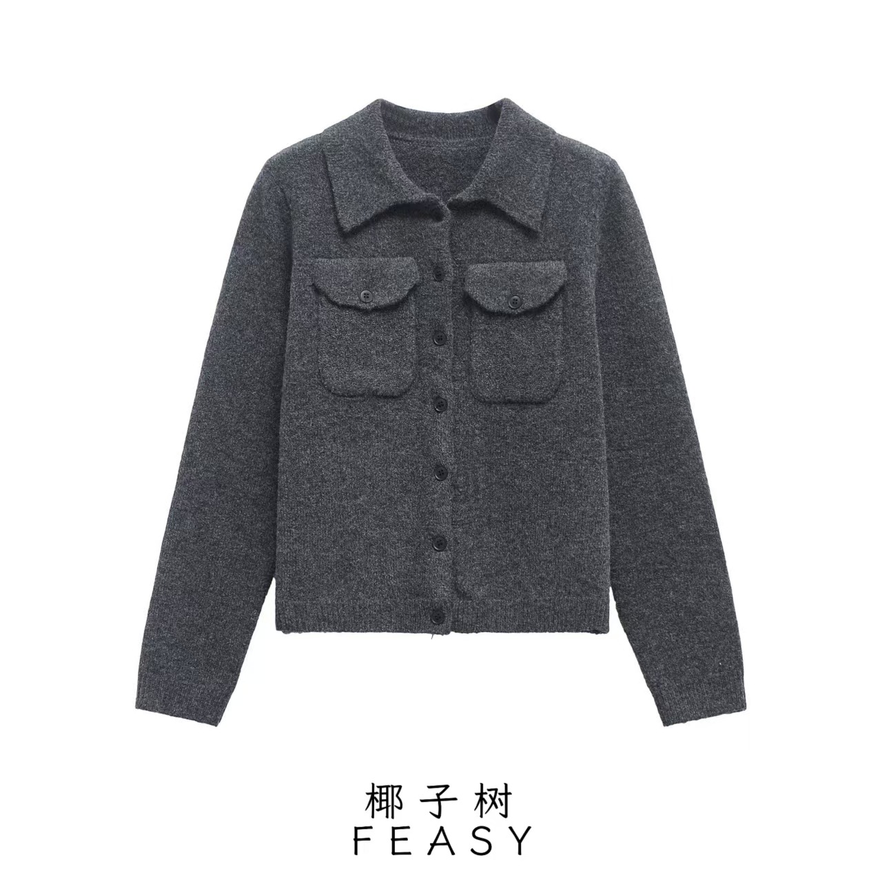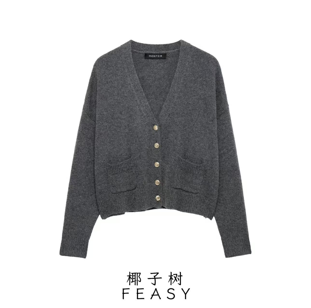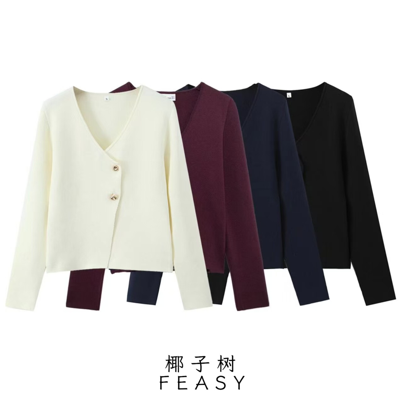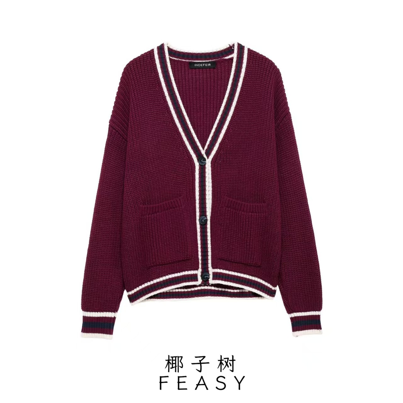 アマゾン国境を越えた対外貿易欧米の女装2024秋冬の新型縁飾り気質のシンプルなvネックニットコート