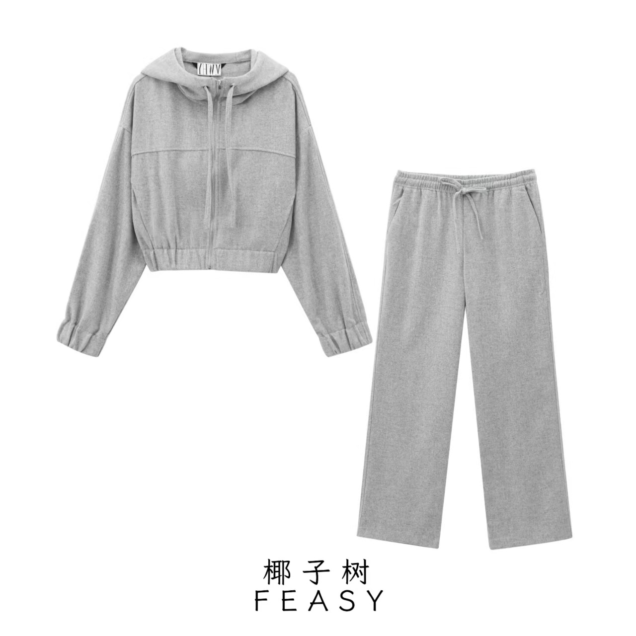 アマゾンの国境を越えた対外貿易欧米の女装2024秋冬の新型フード付きソフトショートタイプのガードルのストレートパンツセット
