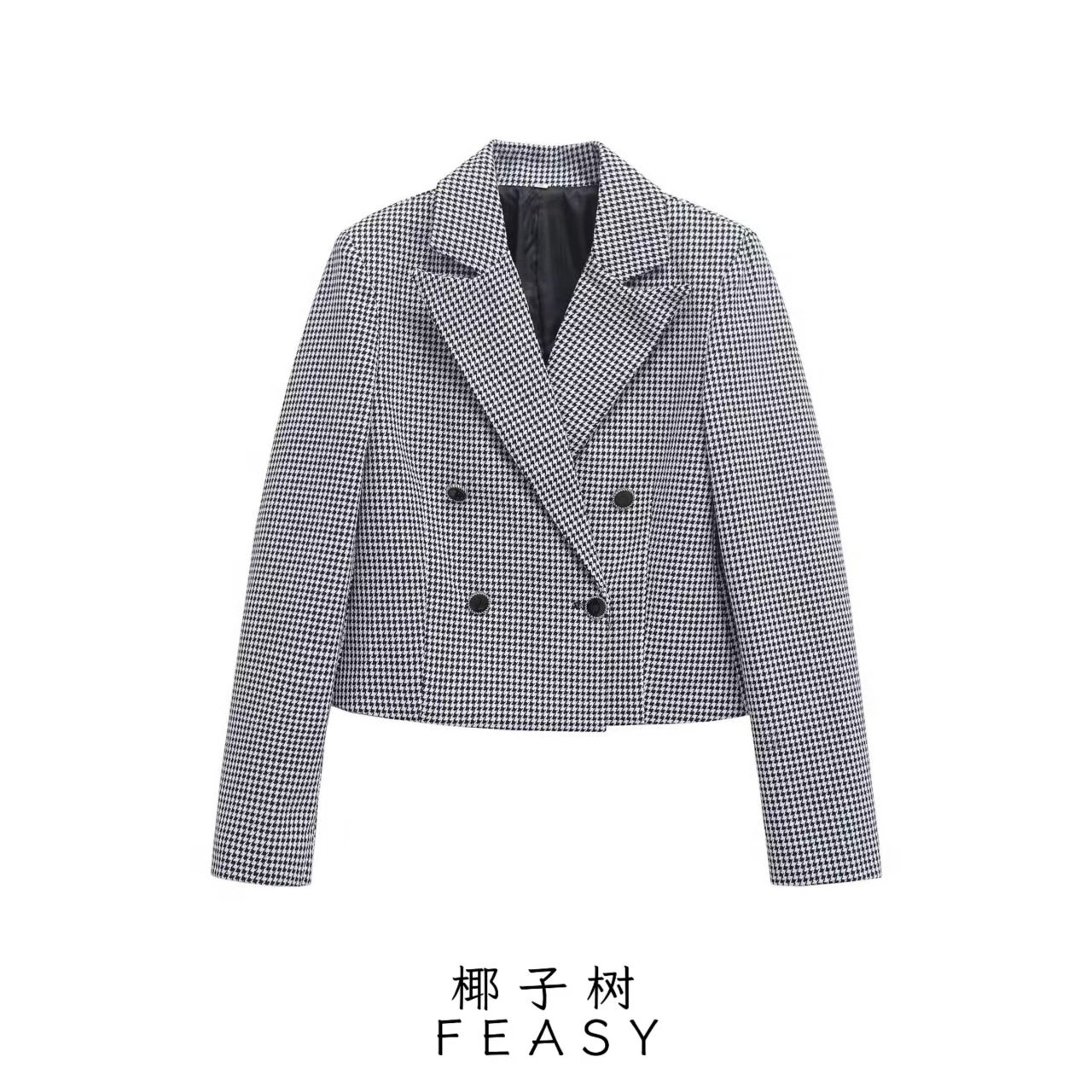 アマゾンの国境を越えた対外貿易欧米の婦人服2025春の新型街頭ファッション千鳥格の短いスーツのコート