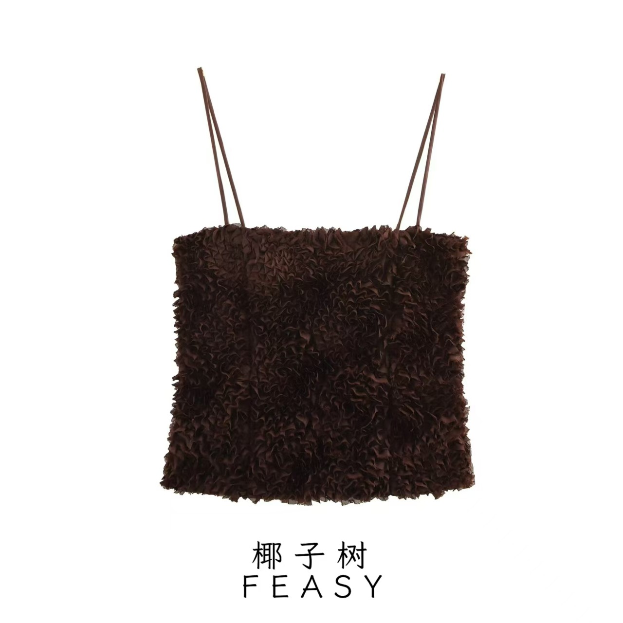 アマゾンの国境を越えた対外貿易欧米の女装2024秋冬の新しい街頭ファッションのふわふわしたメッシュのストラップの上着