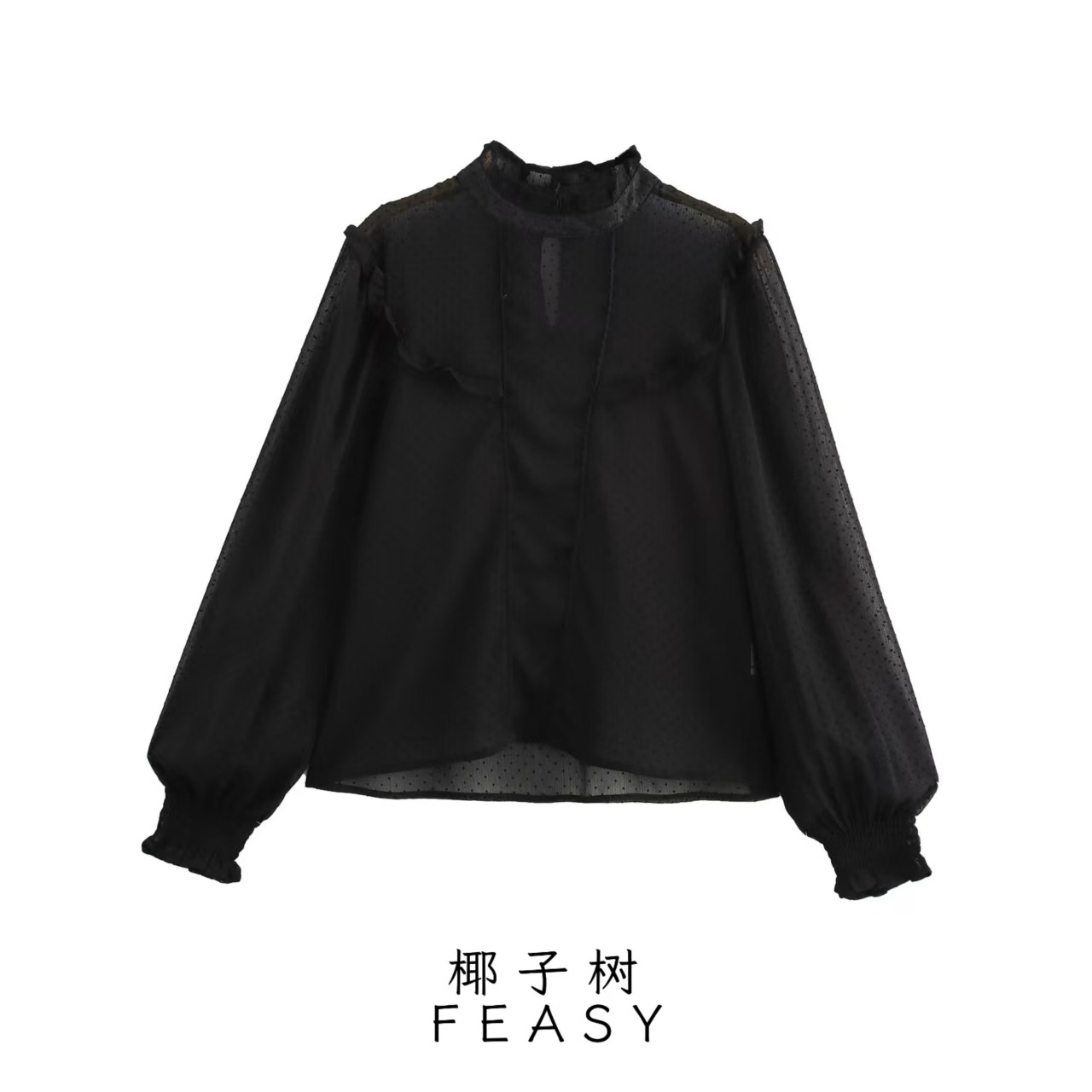 アマゾンの国境を越えた対外貿易欧米の女装2024秋冬の新しい街頭ファッションの薄紗波点長袖シャツ