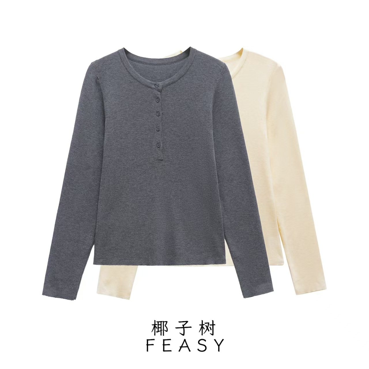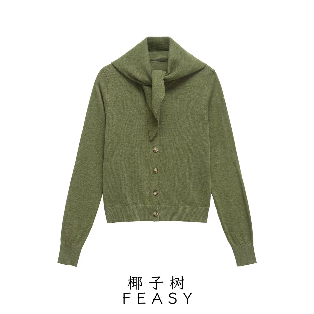 アマゾン国境を越えた対外貿易欧米の女装2024秋冬の新型ファッション平針ボタンの小さな開襟ニットウェア