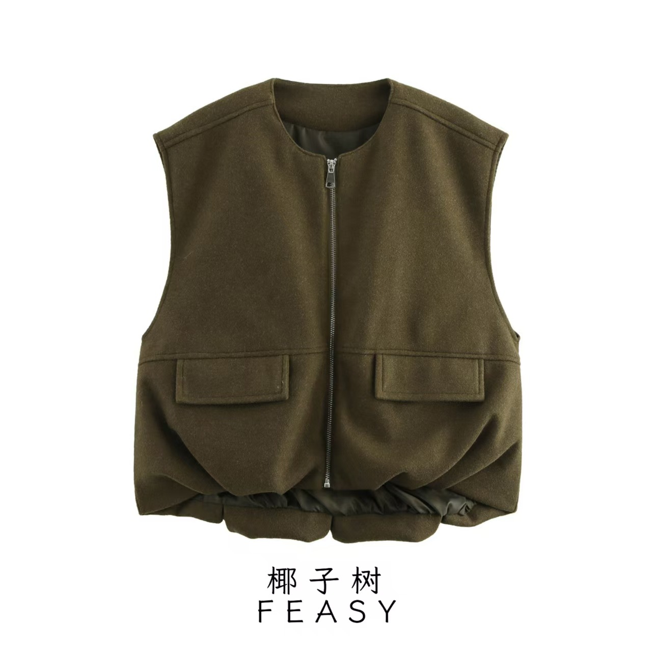 アマゾン国境を越えた対外貿易欧米の女装2024秋冬の新型袖なしのしわのゆるいポケットジャケット