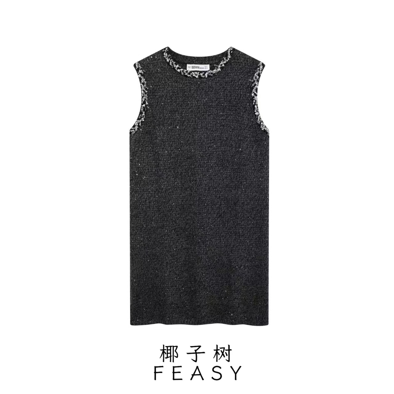 アマゾンの国境を越えた対外貿易欧米の女装2024秋冬の新しいファッションの丸首の玉の飾りはニットのワンピースを持ちます。