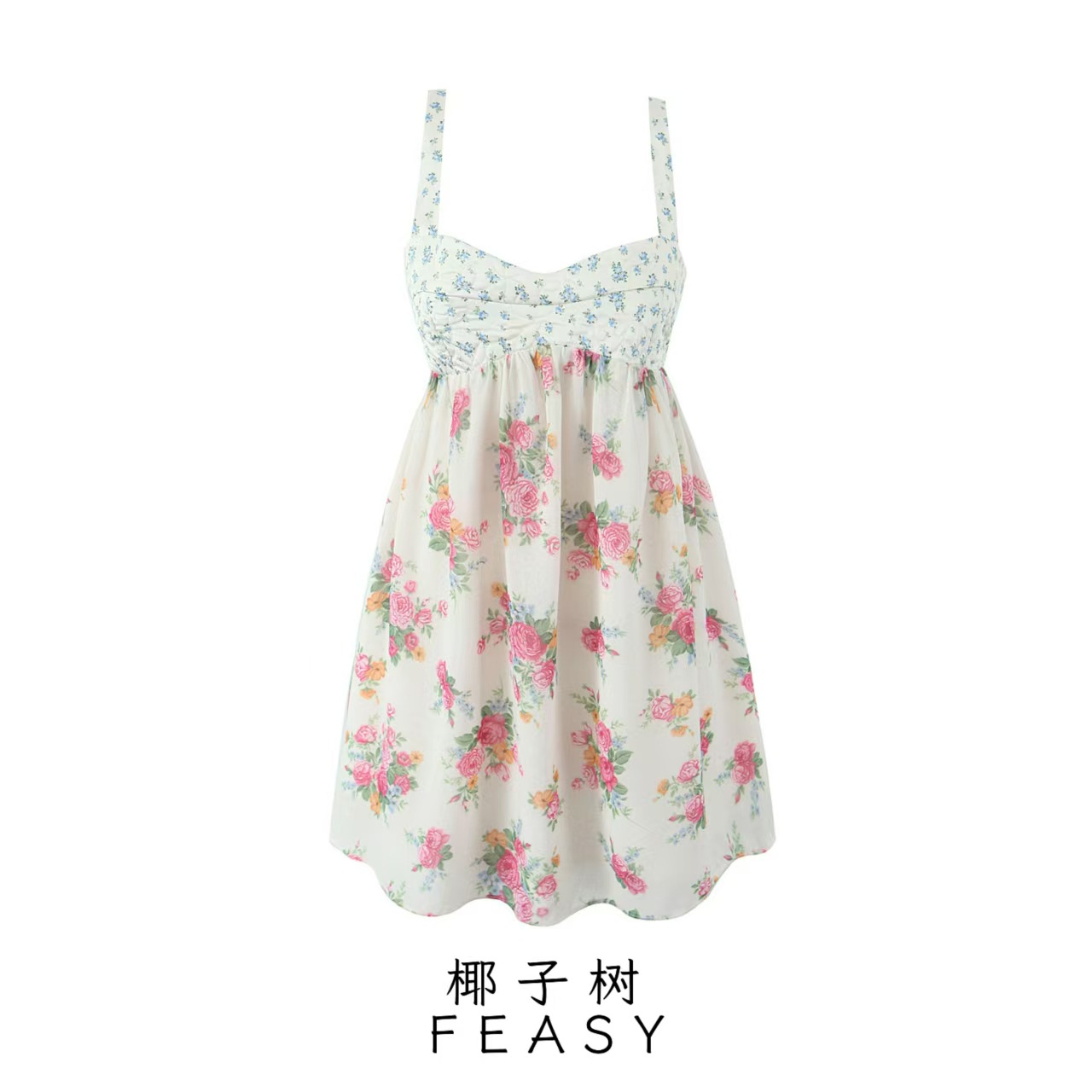 アマゾン国境を越えた対外貿易欧米の女装2024秋冬の新しいファッションの色合わせプリントのストラップのワンピース