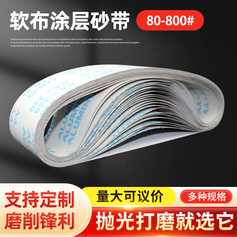 柔らかい布コーティングされたサンディングベルト白い砂木工金属研削コーティングアンチブロッキングアルミニウム合金研削研磨ベルト白