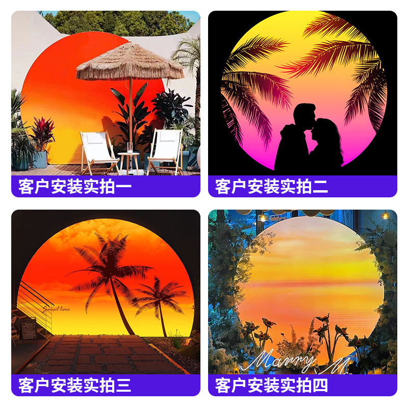 夕日落日灯箱カード布軟膜月壁雰囲気感円形背景結婚式キャンプネット赤カード灯箱