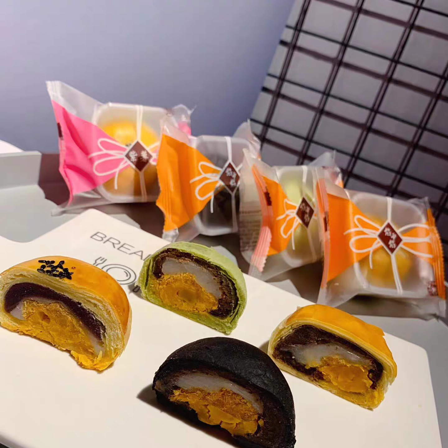 台州の餡の中の餡の80グラムの手作りの卵黄のショートニングの中秋の月餅のあんのショートニングの皮の雪の媚娘の伝統の菓子の卸売り