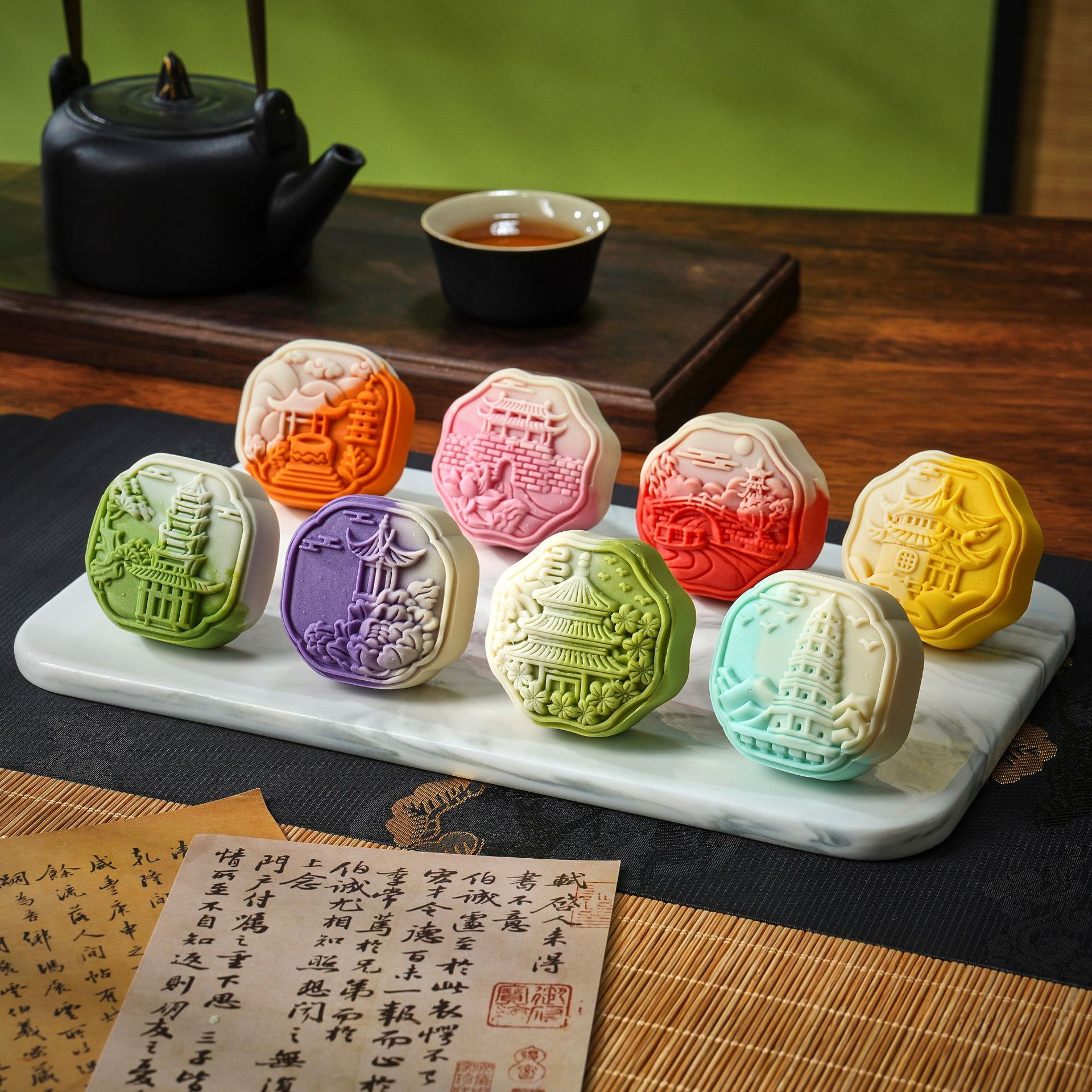 シンフォニーグラデーションフローメンタル月餅ライトミルクティーフレグランスソフトハート月餅新しい中国風ペストリーフローメンタル月餅ギフトボックス卸売