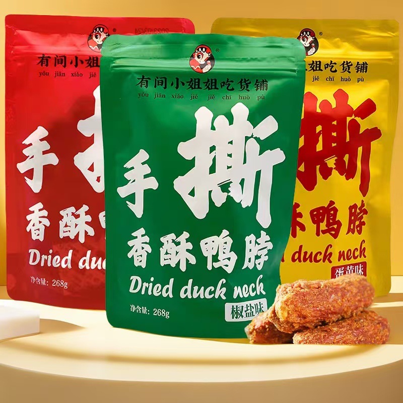 あるお姉さんは荷物屋のアヒルの首を食べて、香ばしい風を裂いて、アヒルの首を焼いて、卵黄を袋に入れて、ハロゲンを食べます。