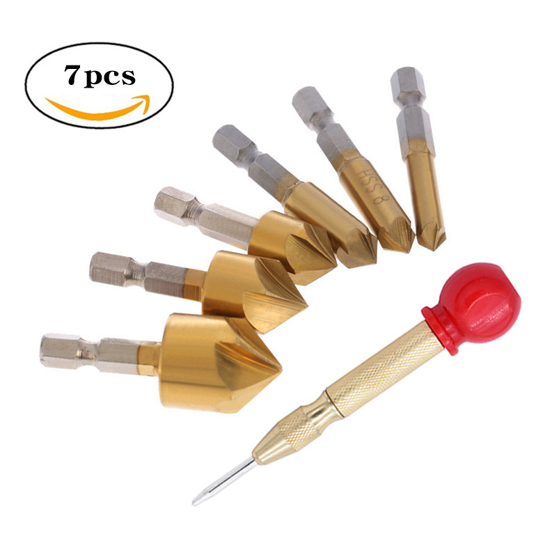 越境六角柄チタン五刃面取り器木工バリ取りツール自動センターパンチセット