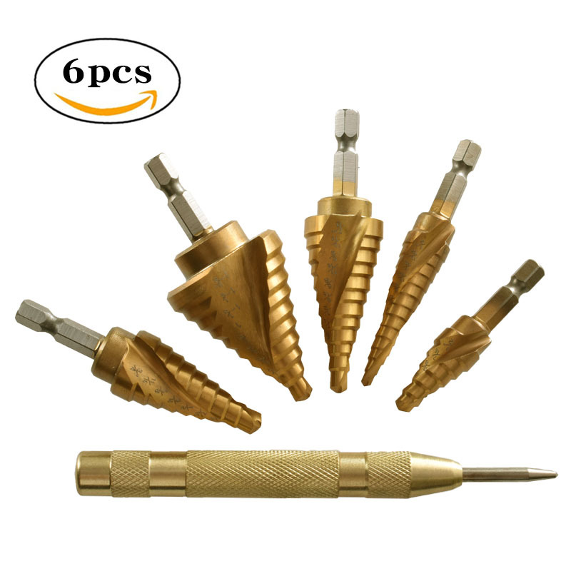 英製階段ドリル懐中電灯ドリル穴開け工具階段ドリルセットチタンメッキ螺旋六角柄宝塔ドリル
